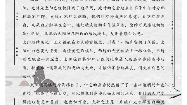 嗯……第一个颜色应该是最淡的,那就选淡黄色吧!第二个,颜色应该深一点,就纯黄色吧!第三个是土黄,那第四个……对了!橘色跟黄色非常接近,就橘色!可是选到第五个时,我犯难了:除了黄色,就没有比它更接近橘色了!这时,我看了看早已选好的第七个——红色,顿时心生一计:哈!跟红色最接近的.颜色不就是粉色吗!想到这里,我赶紧把粉色给安顿好了。接着就是红色。咦?第八个排什么呢?我又犯难了。哎,算了算了,随便插上个吧!就绿色!接下来就是蓝色,然后就是灰色、棕色。当排到最后的位置时,我看了看最后的两枝彩笔:一枝是深紫、一枝是深黑。我对比了一下,嗯!黑色最深,这个位置就是它的了。至于紫色吗,就在黑色身边吧!