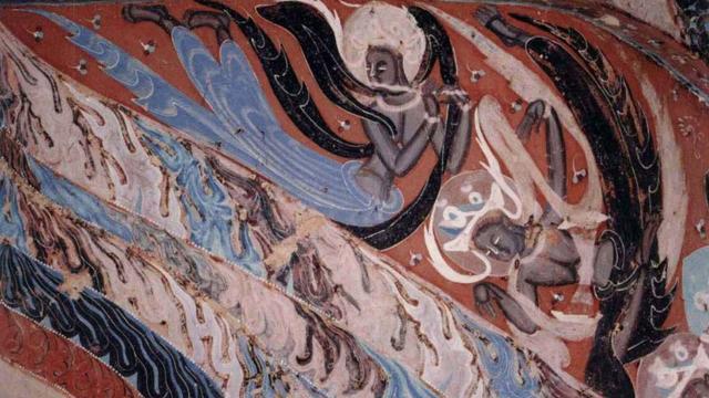 壁画也是莫高窟的一绝。壁画的内容很丰富,其中最有名、最吸引人的莫过于飞天。他们有的迎风而舞,有的双手合十,有的面向后倒着飞行,姿态各不相同。遗憾的是,这些壁画上面的人物面部大多都已经被氧化,甚至脱落,看不清楚了。