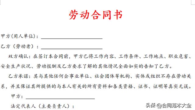 二、用人单位与职工使用本合同书签订劳动合同时,凡需要双方协商约定的内容,协商一致后填写在相应的空格内。签订劳动合同,甲方应加盖公章;法定代表人或主要负责人应本人签字或盖章。