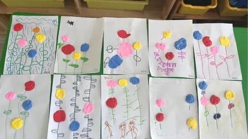 在最后交流与乃至此后几天中,幼儿常围绕着四大幅画在交流。并时常来告诉我:“老师,我今天又做了××事!”