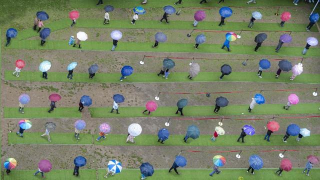 姑娘们高昂着头颅,带着一身骄傲,不断前行。